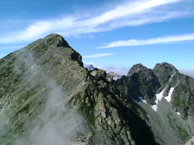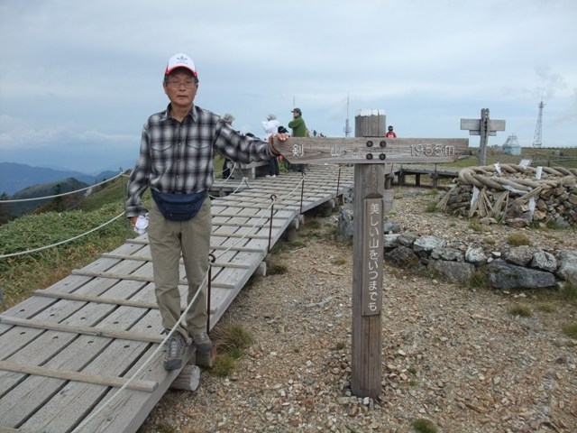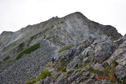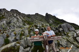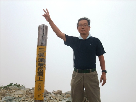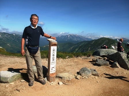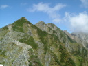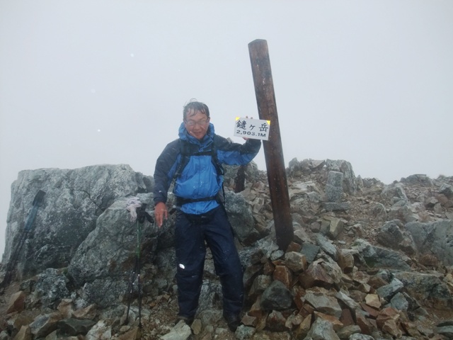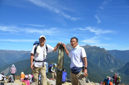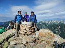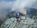 奧穂高岳は写真の山頂の左に見えます。 奧穂高岳山頂 標高3190m 約11時間かけて登頂 穂高山荘にゆっくりと下山