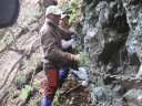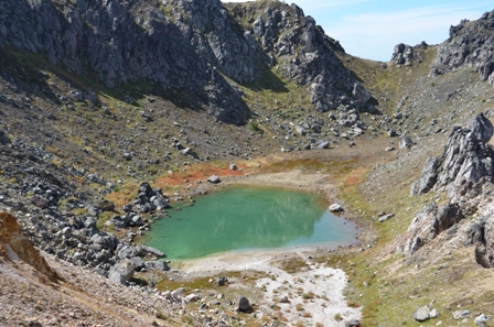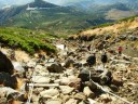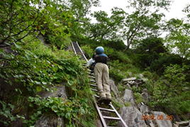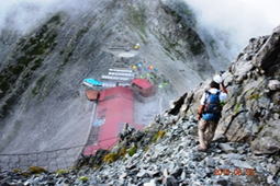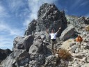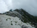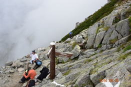 山荘から約20分 初めての梯子 紀美子平 標高2910m 写真右手が前穂 紀美子平 後ろは前穂高岳 標高3090m