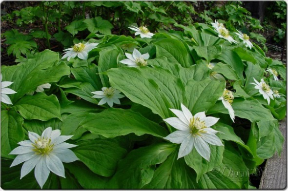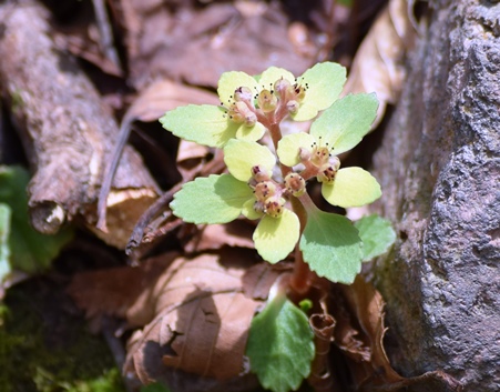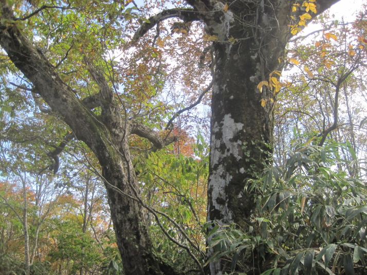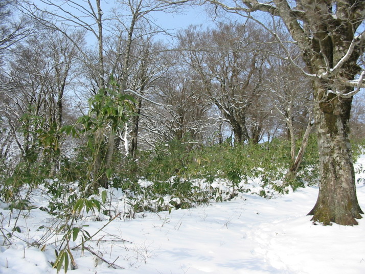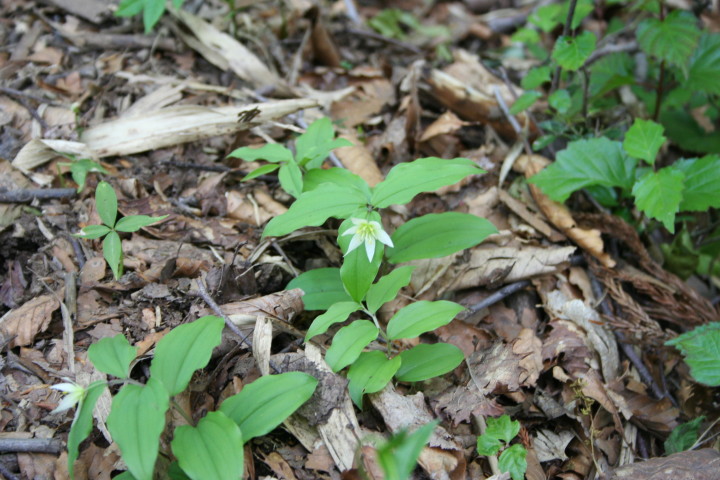 からみあったブナ ヒョウノセンカタバミ? エンレイソウ ユキザサ チゴユリ