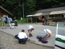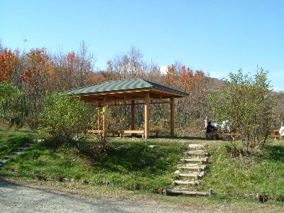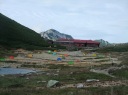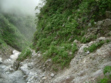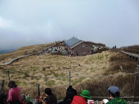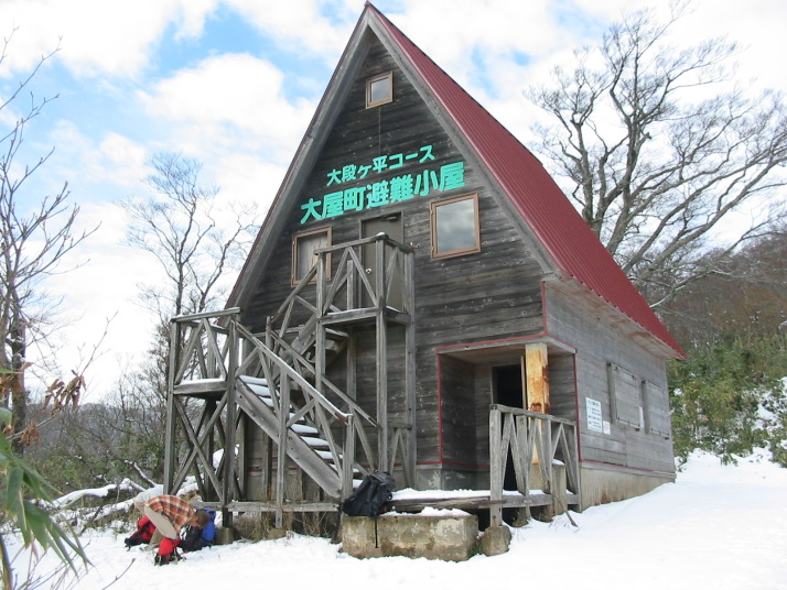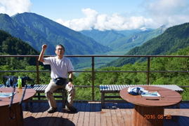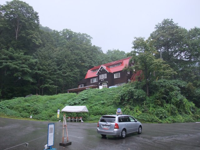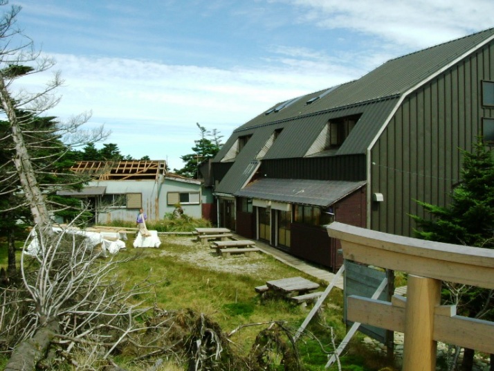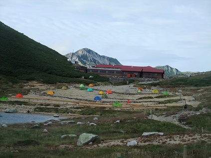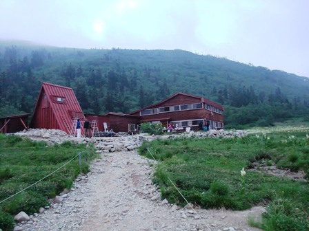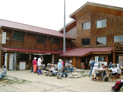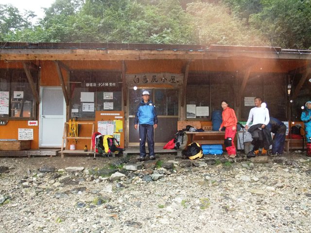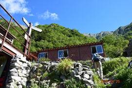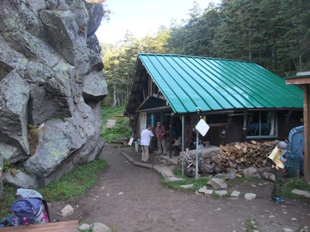 約1時間半歩いた所の景色です。 案内板中央の岳沢にある岳沢山荘です。 岳沢山荘にて 標高2170m