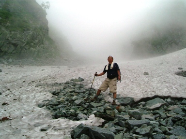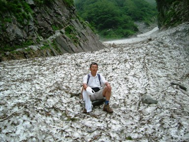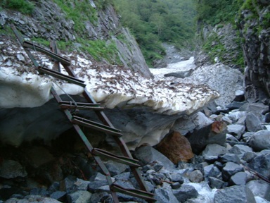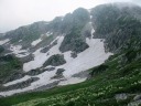 白出沢出合 笠ヶ岳 石切道手前の雪渓 荷継小屋跡へ 荷継小屋跡より90分の雪渓