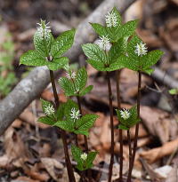 | エンレイソウ | ツクバネソウ | ヒロハテンナンショウ(マムシグサ) | コウライテンナンショウ(マムシグサ) |