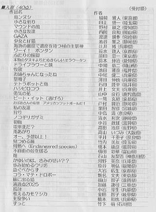 | 谷上満夫 | 兵庫県 | smoking drops a hint, 植木屋の思案煙草 | 黒田敏昭 | 兵庫県 | |