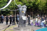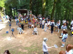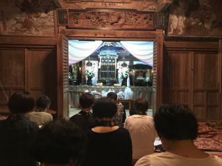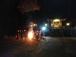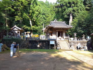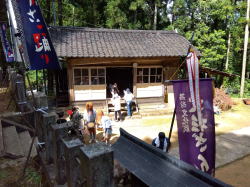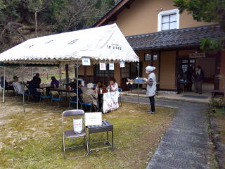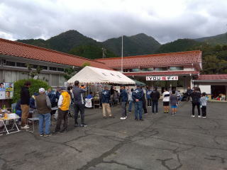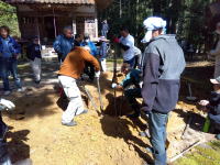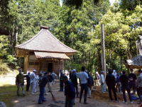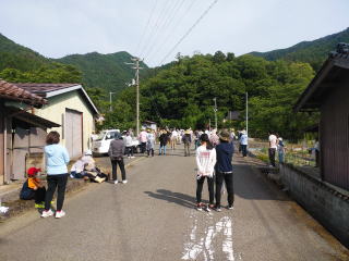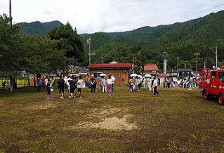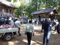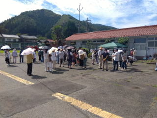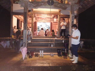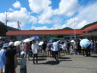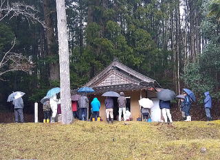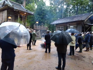 あいにくの空模様でしたが、雨に濡れながら境内で、後公民館で