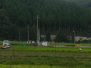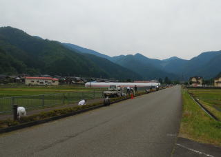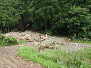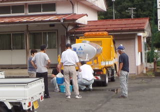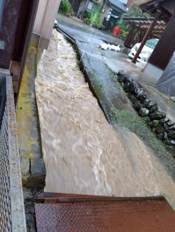 7日 7:00 水道水の濁りで給水車・谷川の氾濫で田んぼ(右)に土砂流入