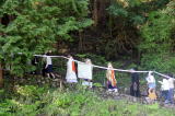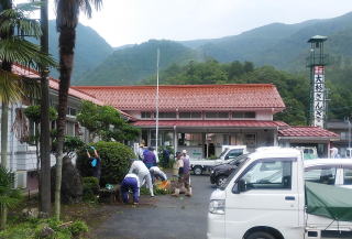 7月8日 消防団により土嚢を撤去・区三役が被害調査開始