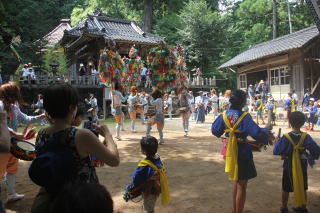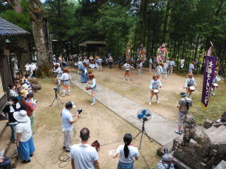 8月16日 台風一過で好天の元、二宮神社でざんざこ踊りが奉納されました。
