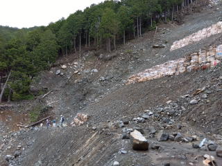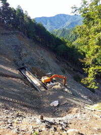 7月12日 大杉区内の被害発生重要箇所を重機・人力で緊急復興開始