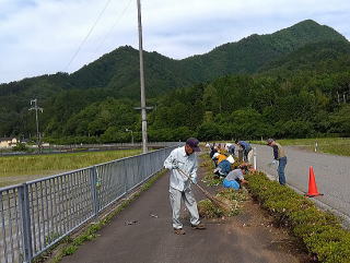 今年も区内のごみ拾いとすこやか広場の除草と道路の花壇の除草が行われ ました。