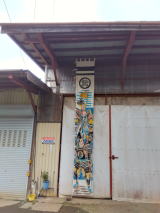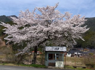 大杉区内にあるバス停留所2カ所に、木彫板が飾ってあります。