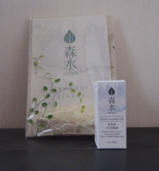 参加者には、地元正垣木材(株)開発の「森水」ひのき精油、が配られました。