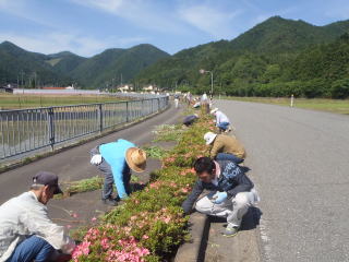 大杉はバイパス道路の花壇の草取り・地区内のゴミ拾い・すこやか広場の草取りを