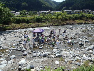 7月22日 子供会といろりの会が魚の掴み取りの集いをしました。